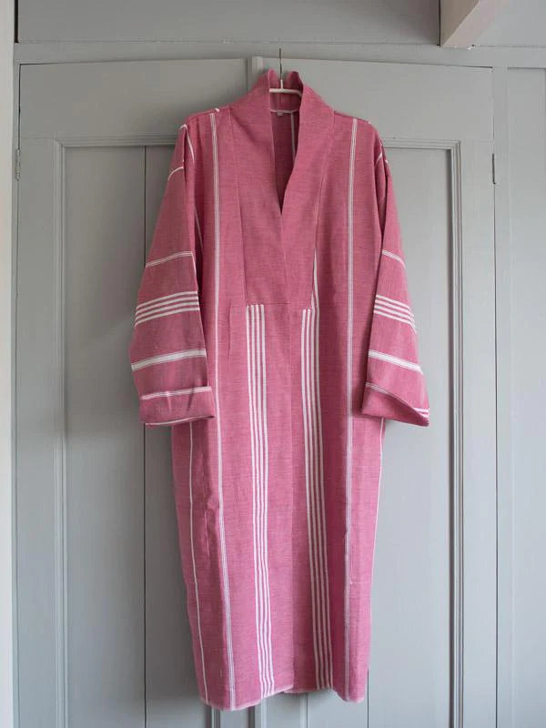 Wash your bathrobe with similar colours. Hammam towels, and so the bathrobe, can be washed at 60 degrees and can be tumbled dry and being ironed