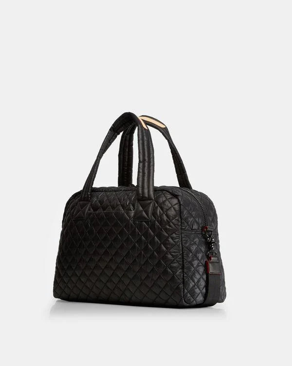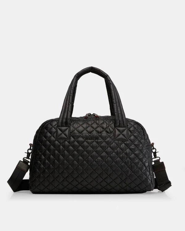 The Jimmy by MZ Wallace is a chic, lightweight duffel bag perfect for your gym clothes and gear. Due to the quilted nylon fabric, it is foldable and convenient for traveling. The Jimmy has 6 interior and 2 exterior pockets, a detachable pouch, a phone holder, a key ring strap and it comes with an additional, adjustable nylon crossbody strap.