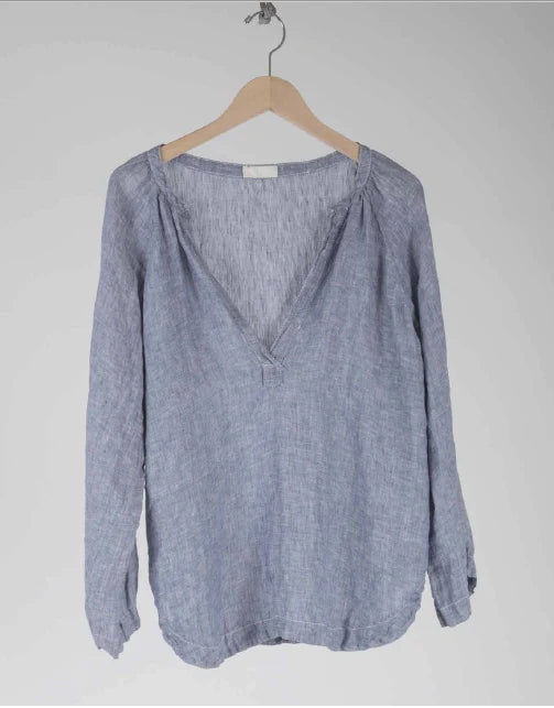 Livia Linen Top in Denim